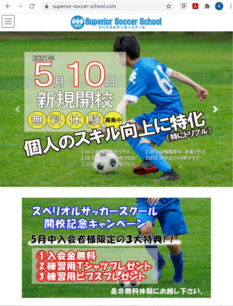 (スペリオルサッカースクールホームページです)
